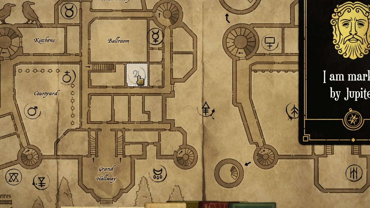 Look through the notes and clue cards to see if they lead you to any discoveries. The clue card – “I am marked by Jupiter” will help you find that item.